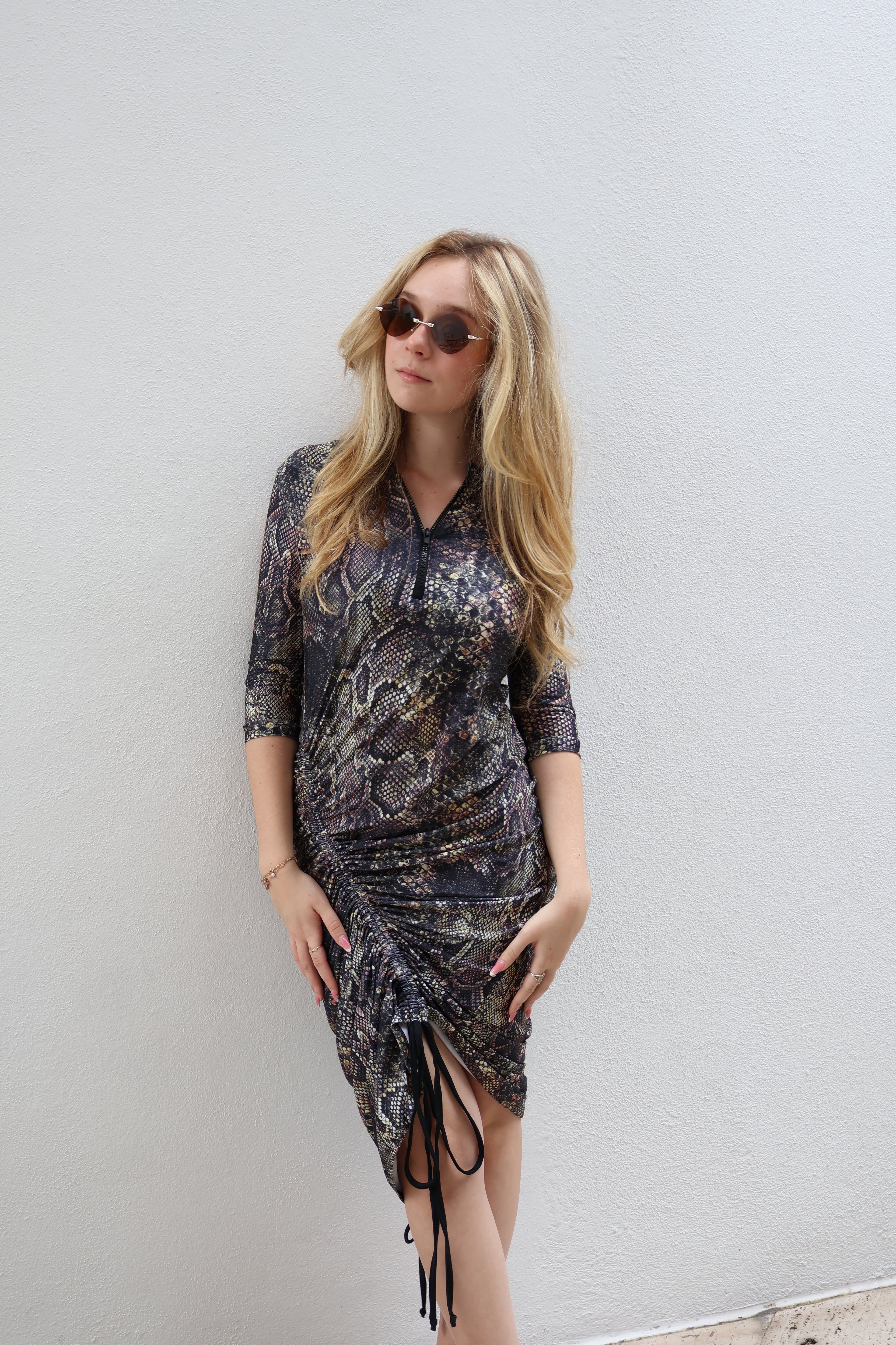 Say BONJOUR TO OUR LATEST ST. Tropez dress! Bringing a touch of French Riviera charm to your modest swimwear wardrobe. With its refined jewel neckline, sleek 9-inch zipper, and impeccably tailored silhouette, it exudes effortless elegance. The pièce de résistance? An asymmetric ruching detail that lets you wear it as a glamorous maxi or playful mini—perfectly suited to your every whim. Crafted from luxurious spandex with UPF 50 protection, this trés chic dress ensures you stay sun-safe while strolling the promenade or lounging poolside. Indulge in a dash of French allure and make every sun-kissed moment magnifique!