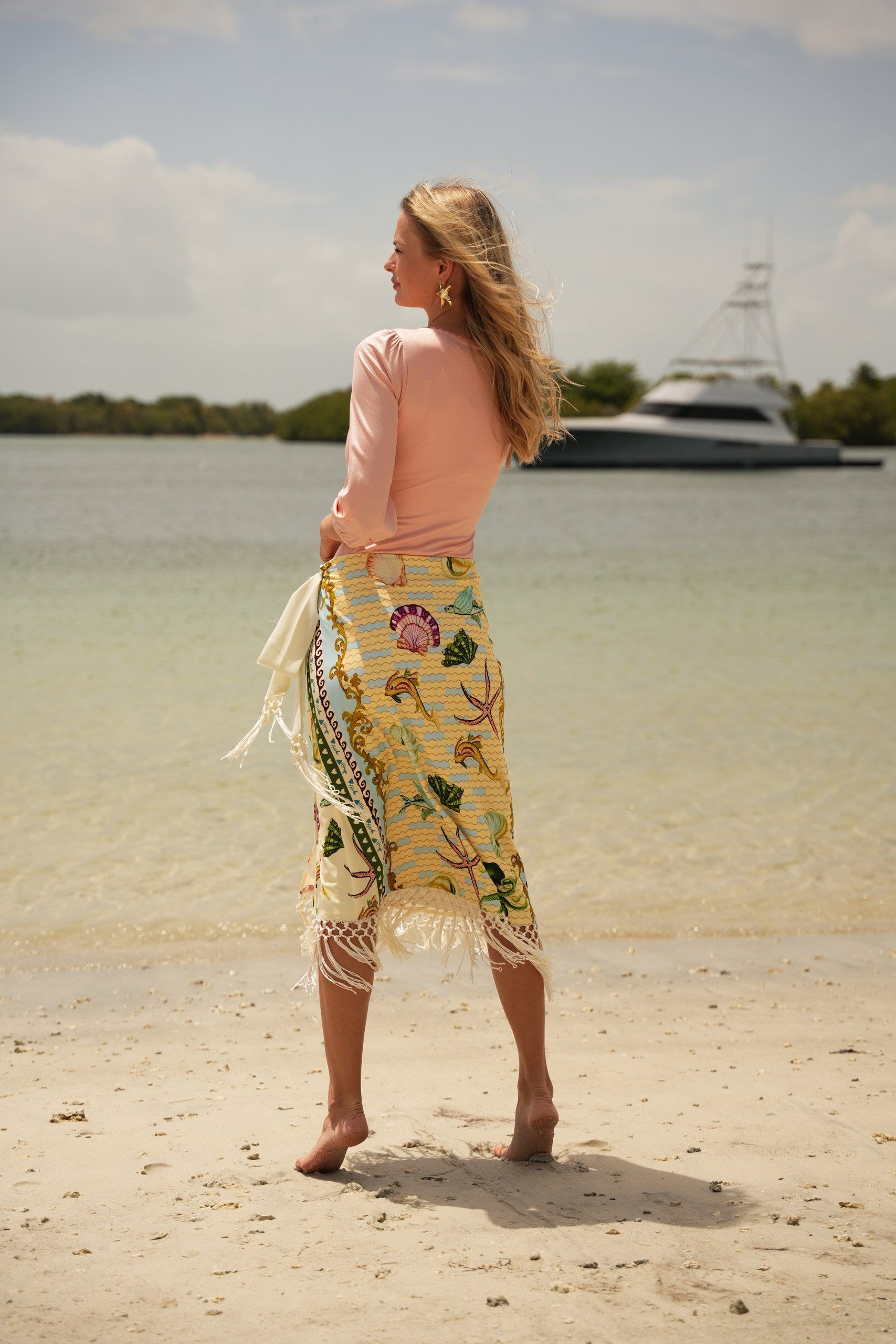 It’s light, expressive, and intentionally effortless. The kind of skirt that makes the beach feel styled.