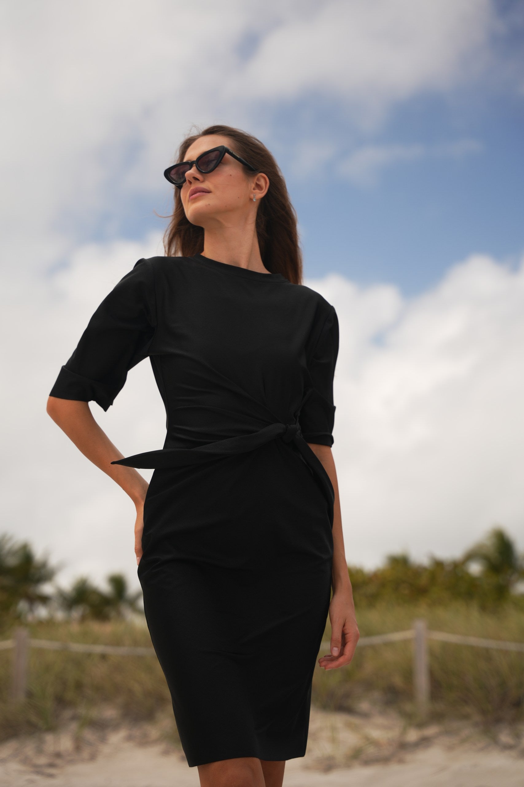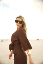 It’s the kind of dress you throw on for beach days, casual pool moments, weekend wandering, and warm-weather travel — polished enough to feel styled, relaxed enough to feel like yourself. The adjustable wrap waist lets you customize the fit, while the flowy shape moves with you for that laid-back, feminine ease CVRGE is known for.