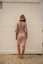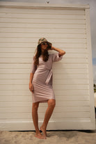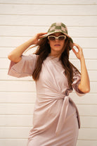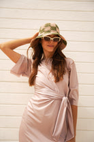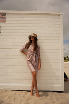 Soft, sun-washed, and effortlessly feminine — the Tulum Dress is your go-to wrap silhouette with a bohemian soul. Designed with a flutter sleeve, wrapped waist detail, and softly rounded neckline, this style drapes beautifully on the body while feeling easy, breathable, and undone in the best way.