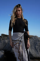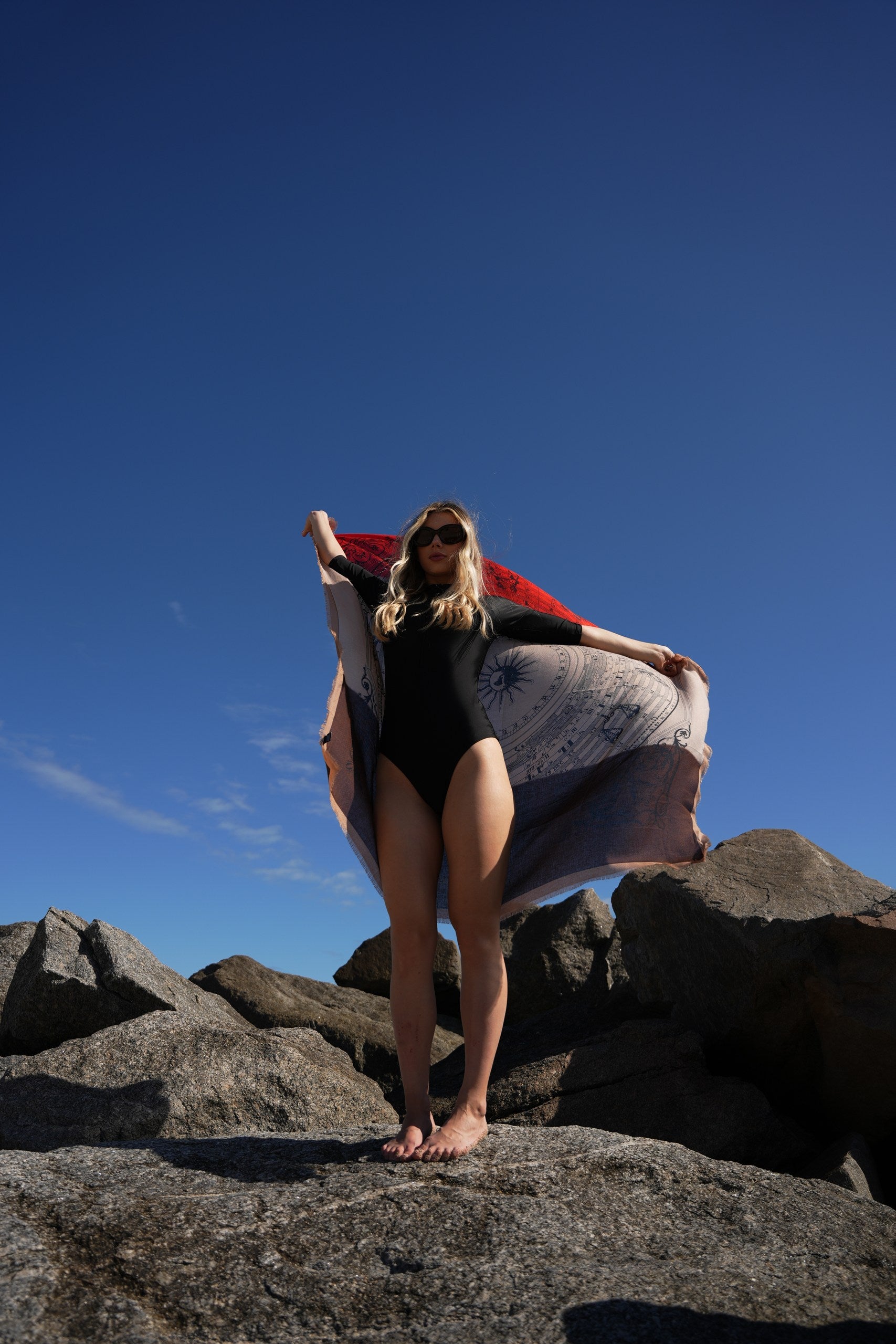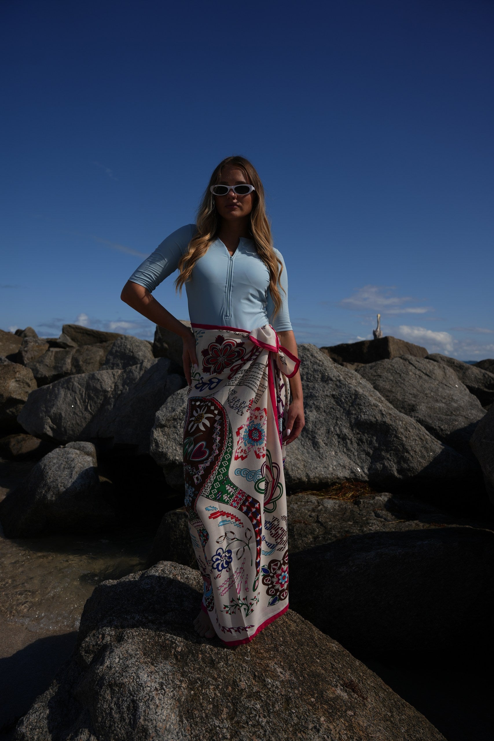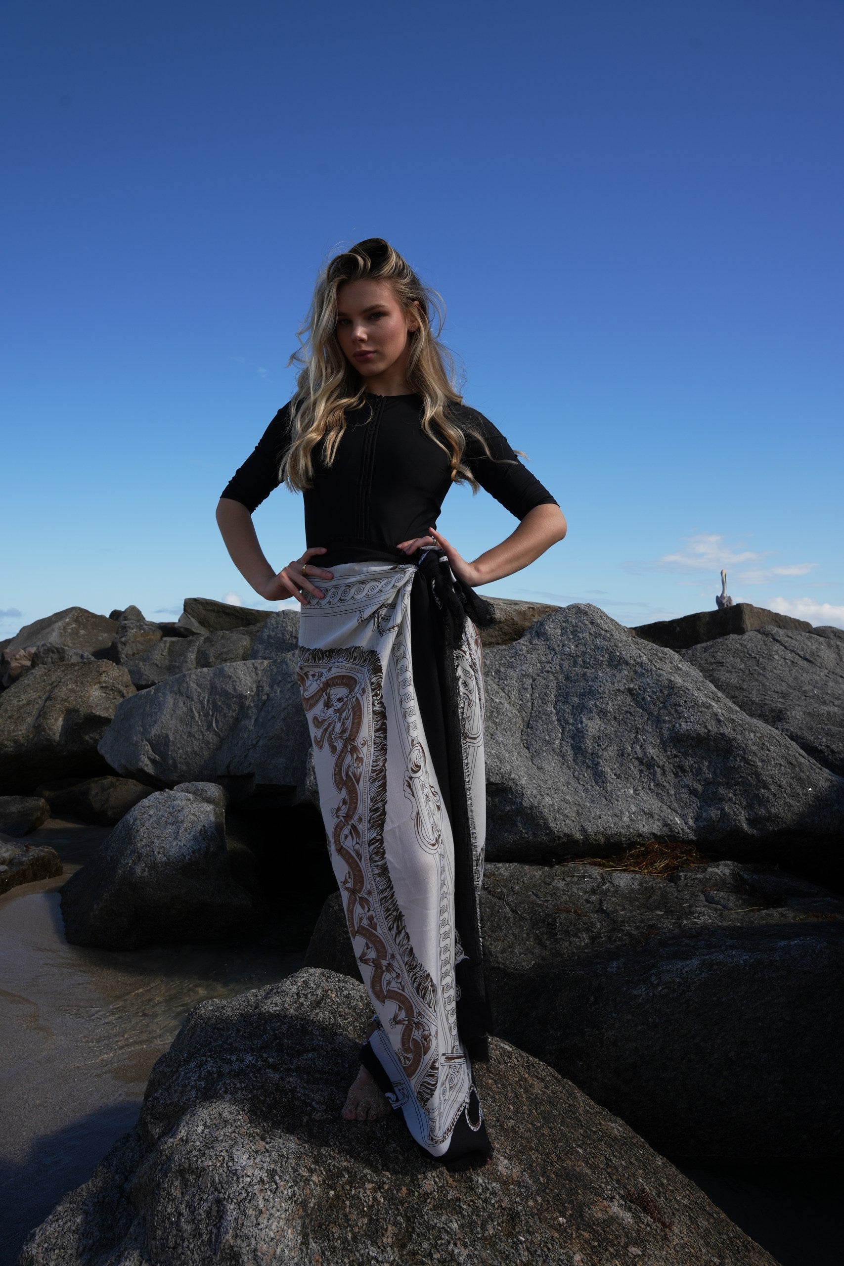 Available in four elevated, designer-inspired prints, The Sarong pairs perfectly with any CVRGE bodysuit. Wear it wrapped as a skirt, draped over the shoulders, or styled as a classic scarf. When it’s time to jump in the pool, simply slip it off—effortless access, always.