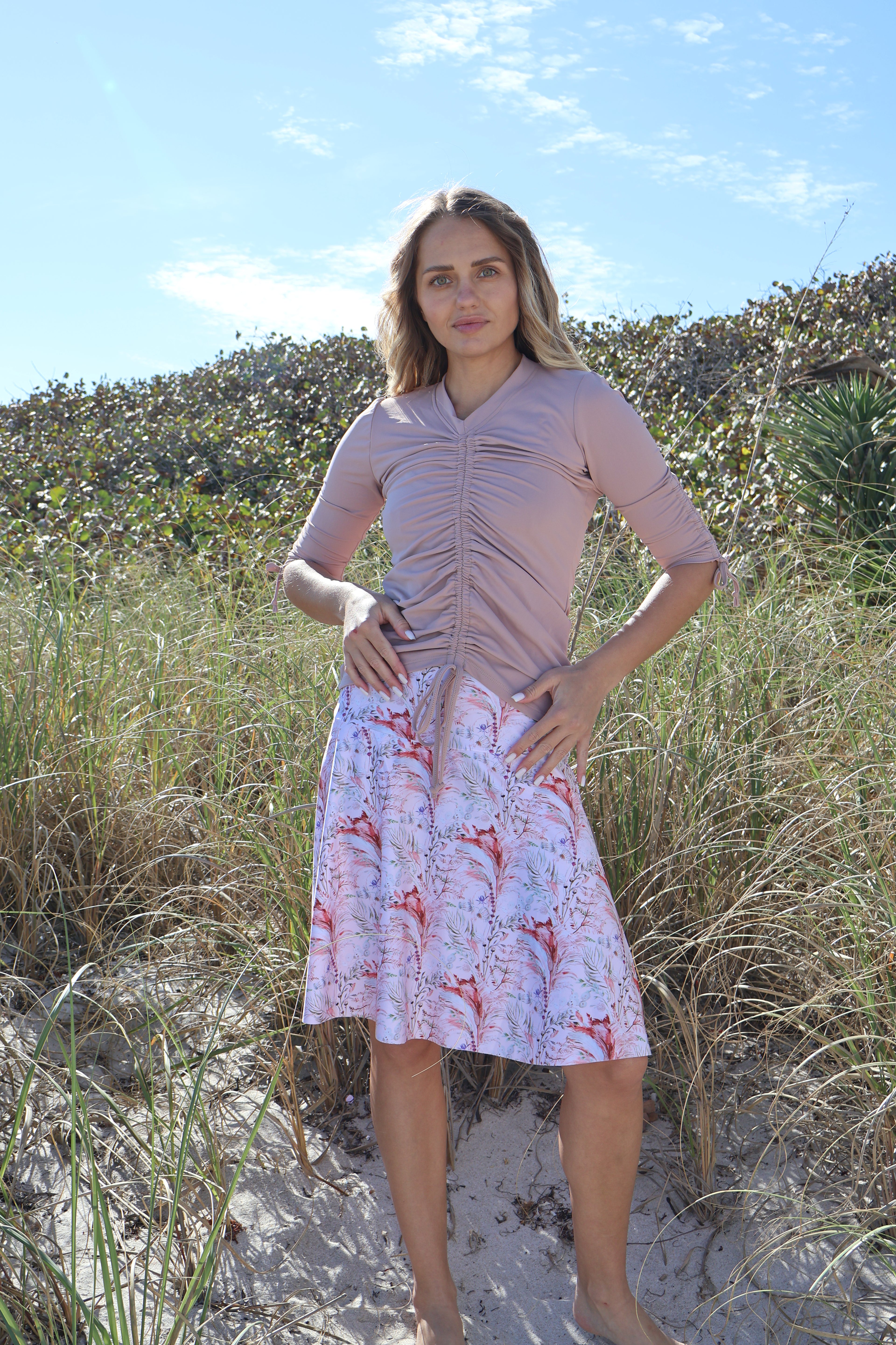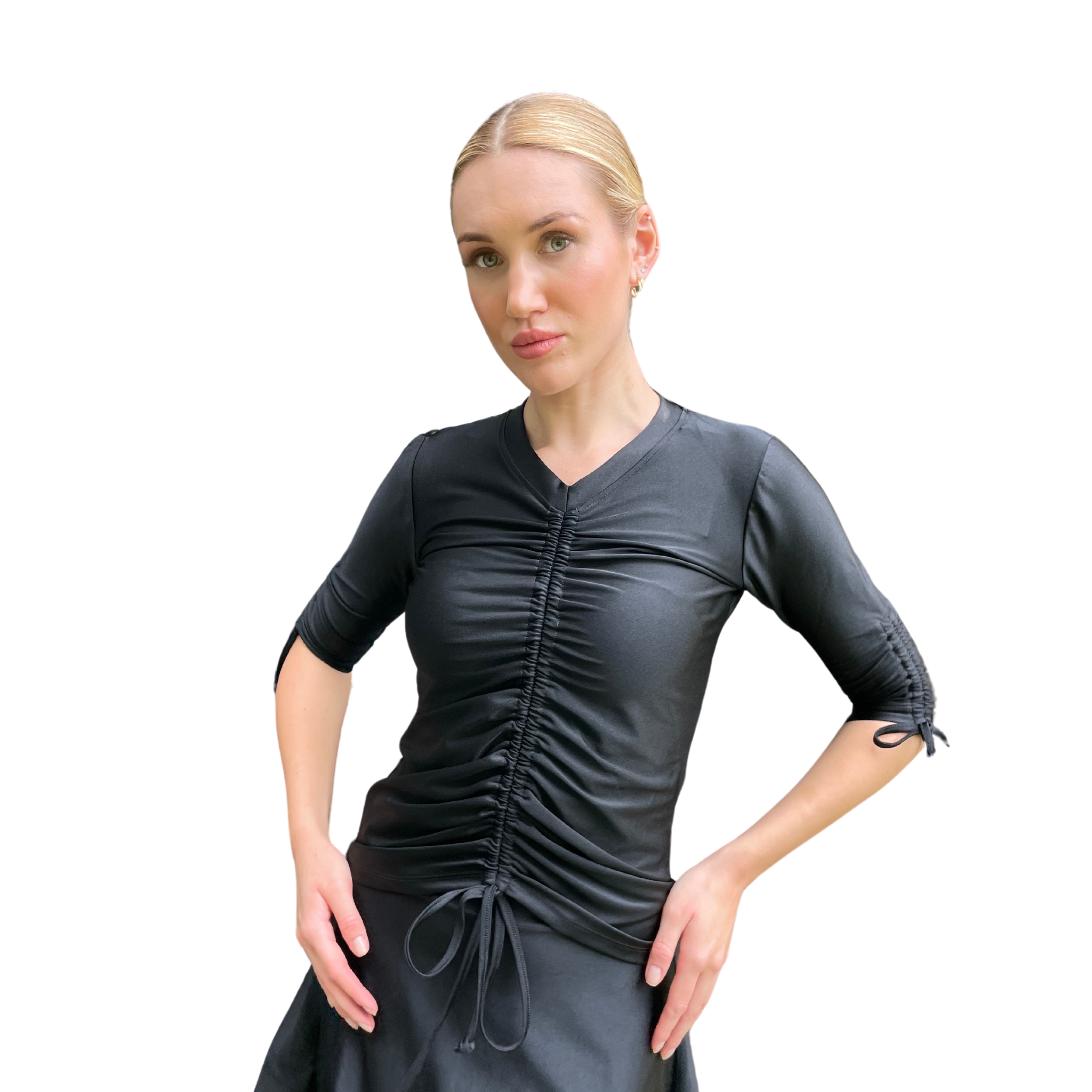 Say hey to the Ibiza Swim Top. It’s got that perfect mix of style and function, no sweat. The high V neckline? Exactly what you've been asking for. The center drawstring? Lets you adjust the length to match your vibe. And those adjustable sleeve drawstrings? Perfect for customizing your look.