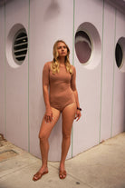 Thoughtful details make all the difference. A wider back provides a smooth, secure fit that prevents bulging, while a snap-closure gusset allows for easy on and off (because real life matters). The result is a bodysuit that holds its shape, layers beautifully, and feels as good at hour ten as it does when you first put it on.