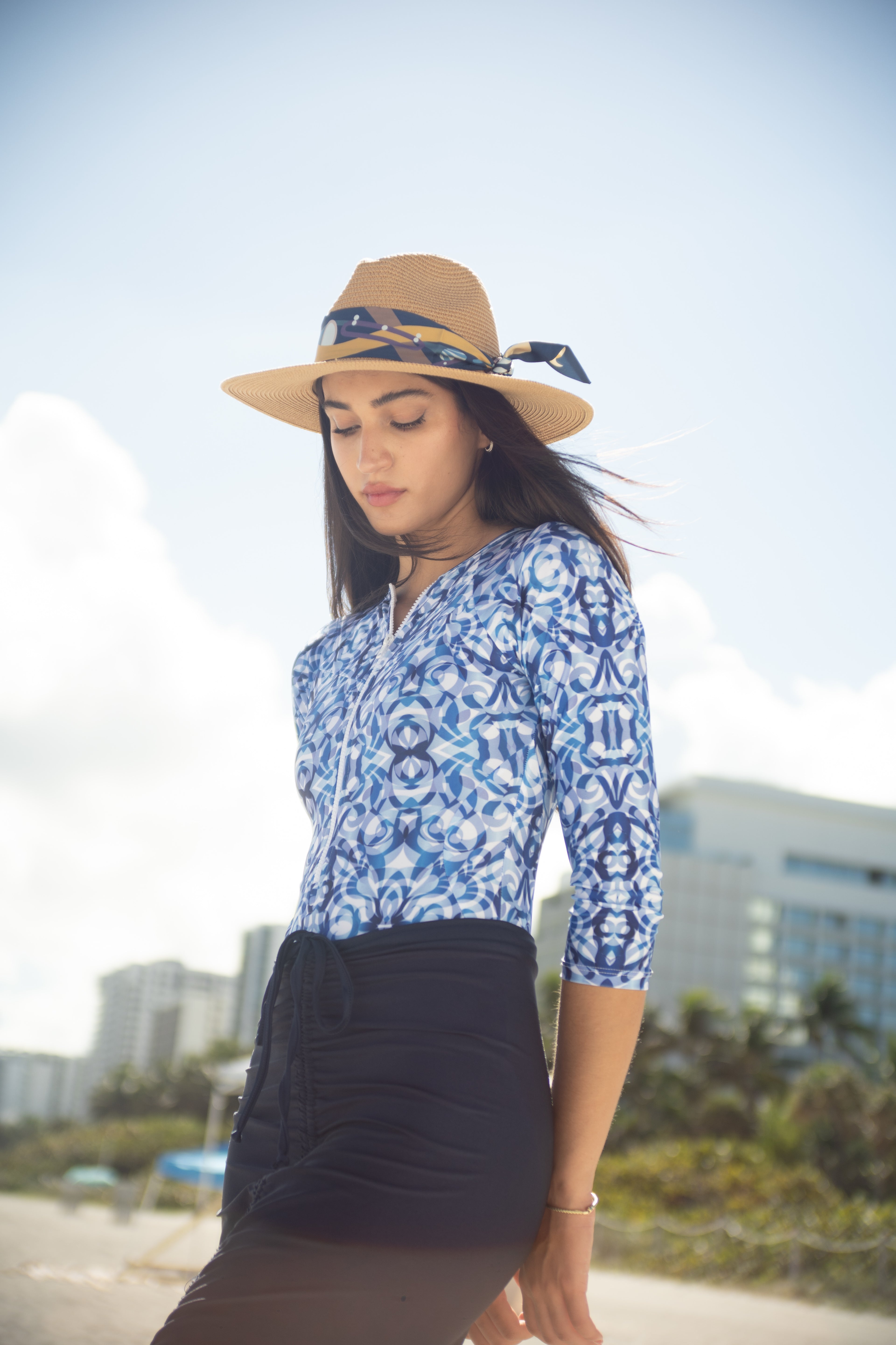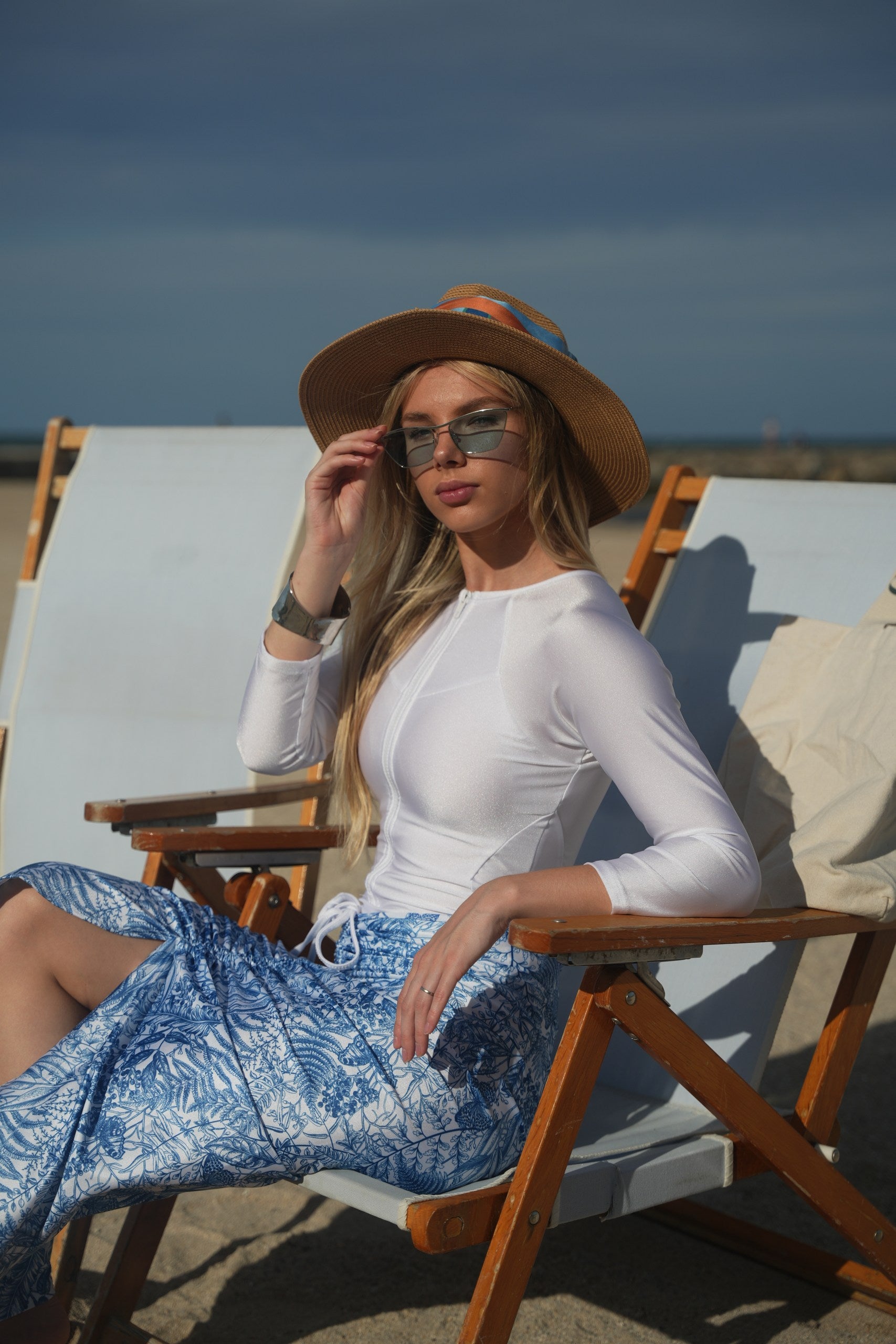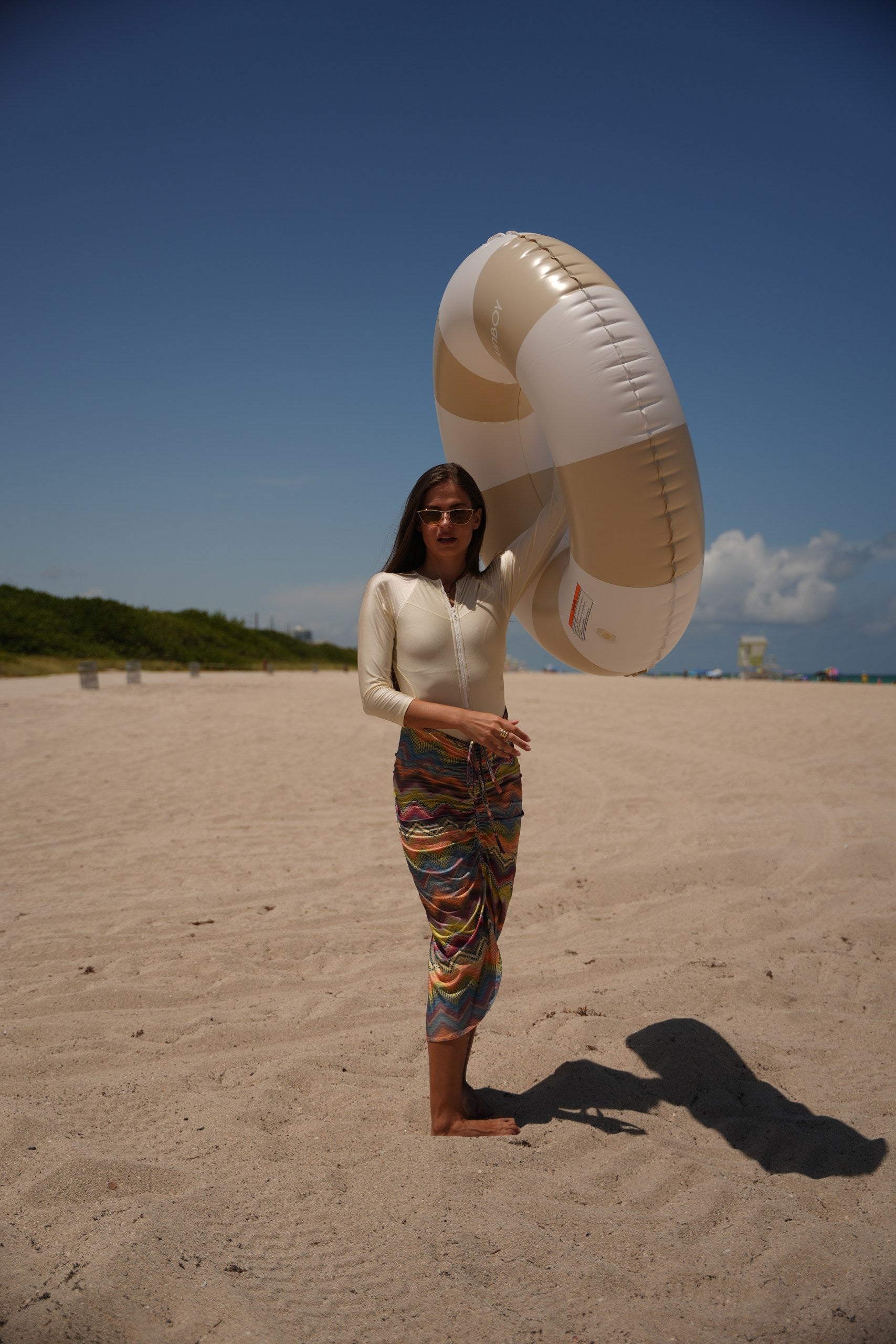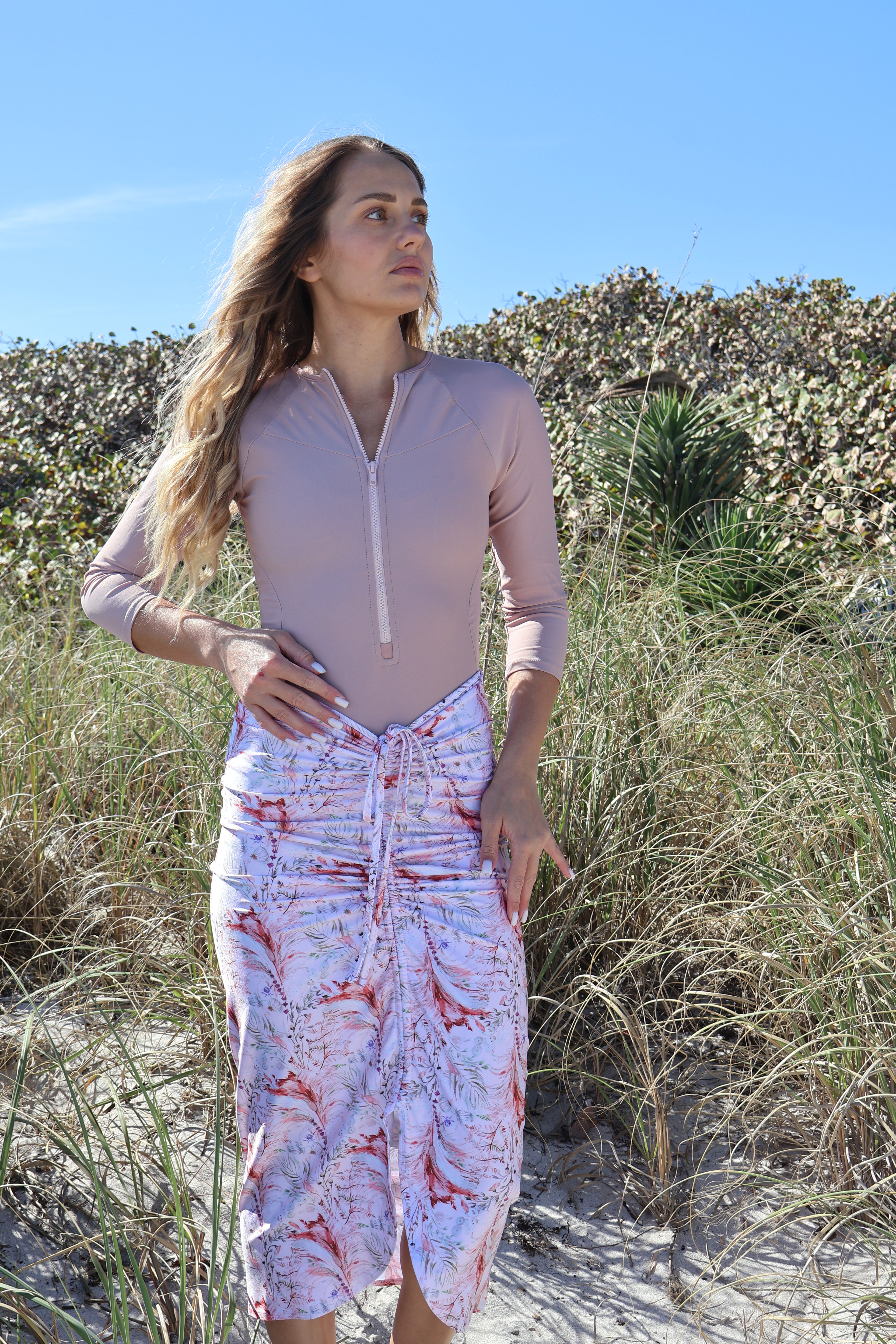 Introducing “Le Body” – the ultimate fusion of shapewear and swimwear! This chic one-piece features compression mesh lining for a body-hugging fit that supports and sculpts. With a jewel neckline that zips down 14”, it transitions effortlessly from pool workouts to sunset cocktails. The bracelet-length sleeves add a sporty yet feminine touch, while the seamless bottom ensures a flawless silhouette. Crafted from quick-dry spandex and UPF fabric, “Le Body” is your stylish go-to for sun season. Elevate your CVRGE wardrobe today!