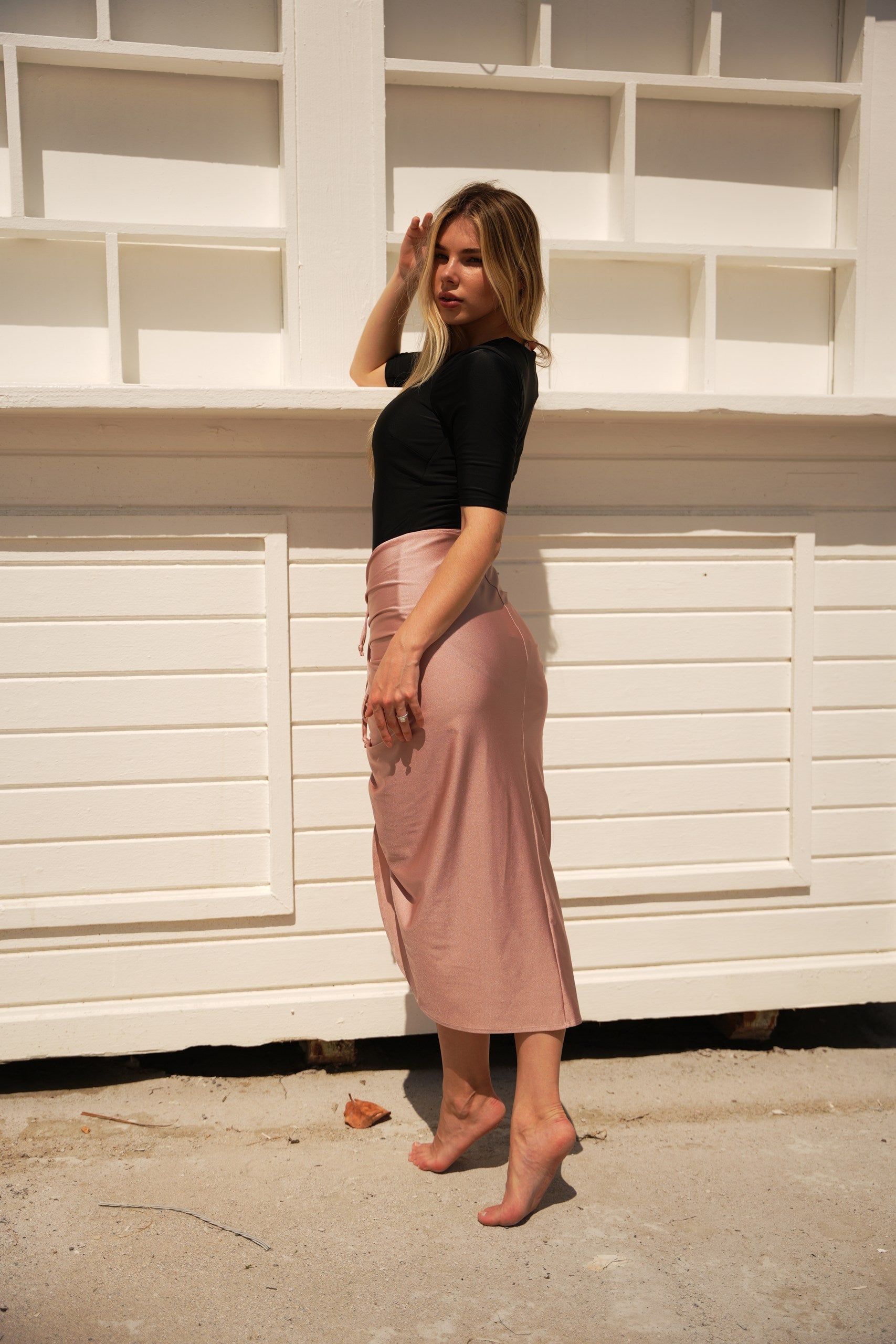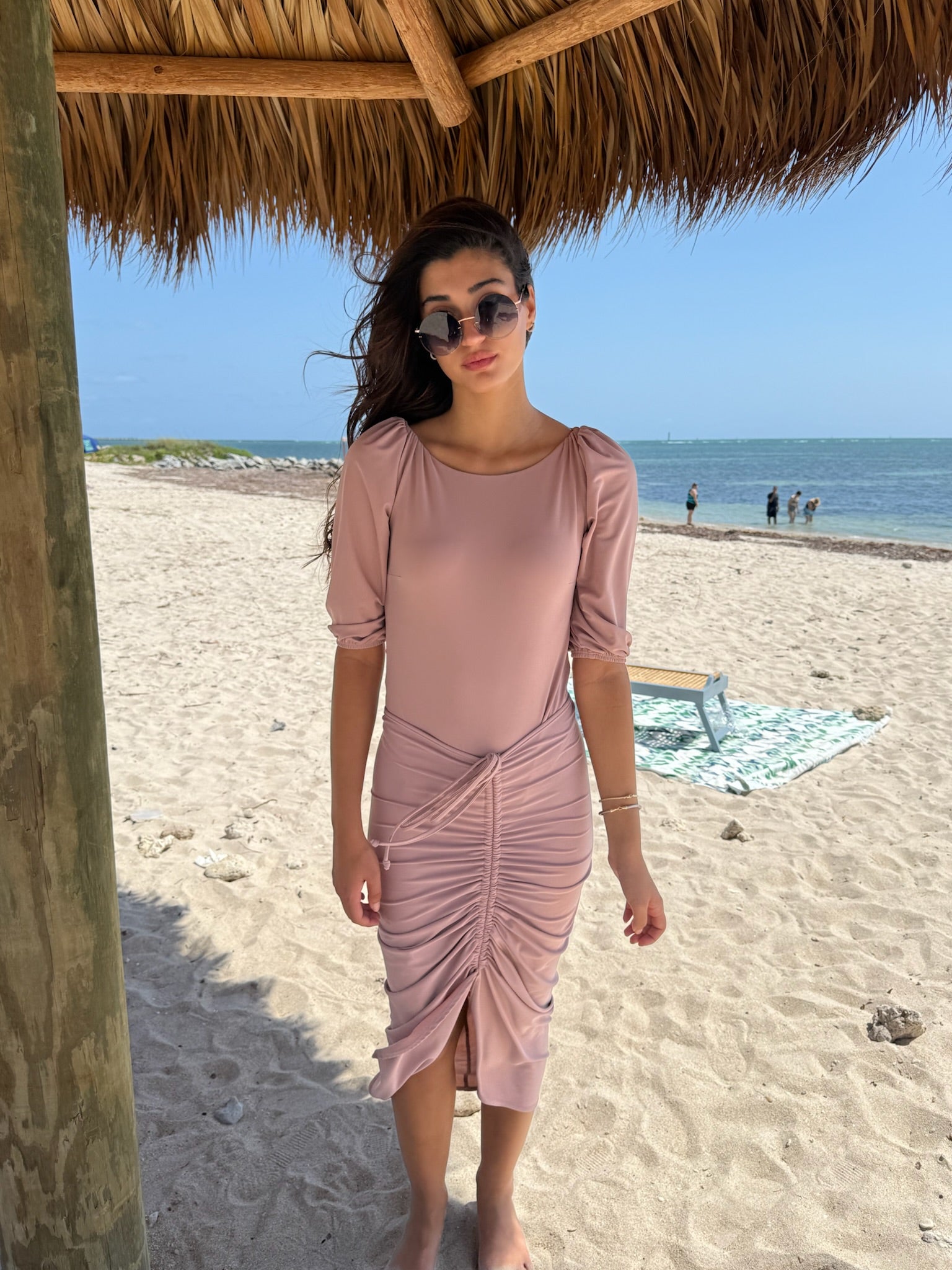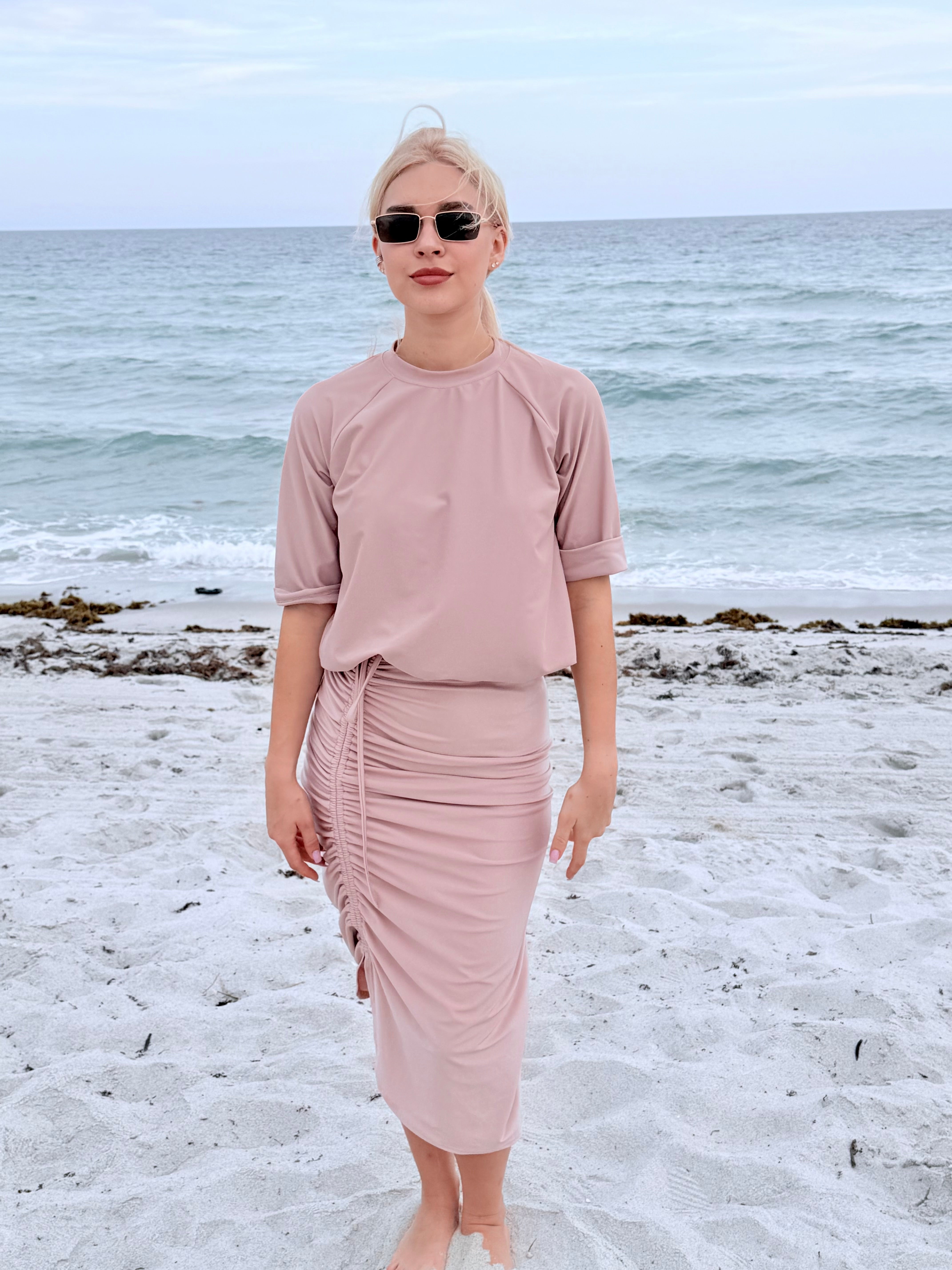 Not your average swim skirt. Mahlia is made to move with you—from the beach to wherever you’re headed next. It’s got an adjustable ruched drawstring you can wear down the center or off to the side, depending on your mood.
