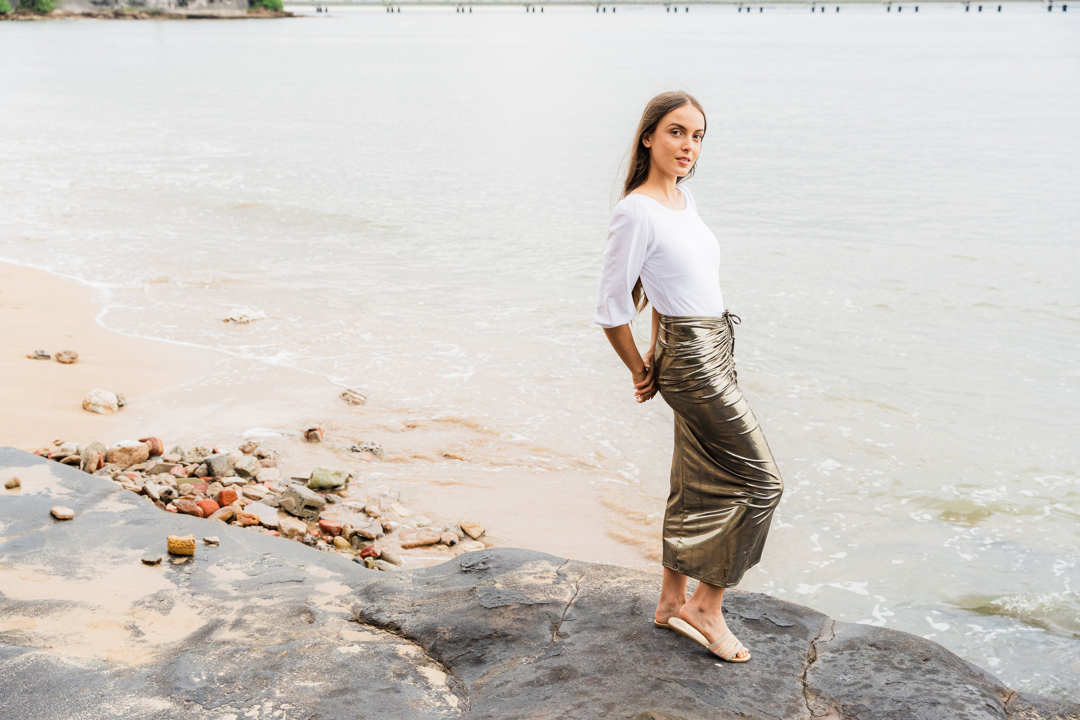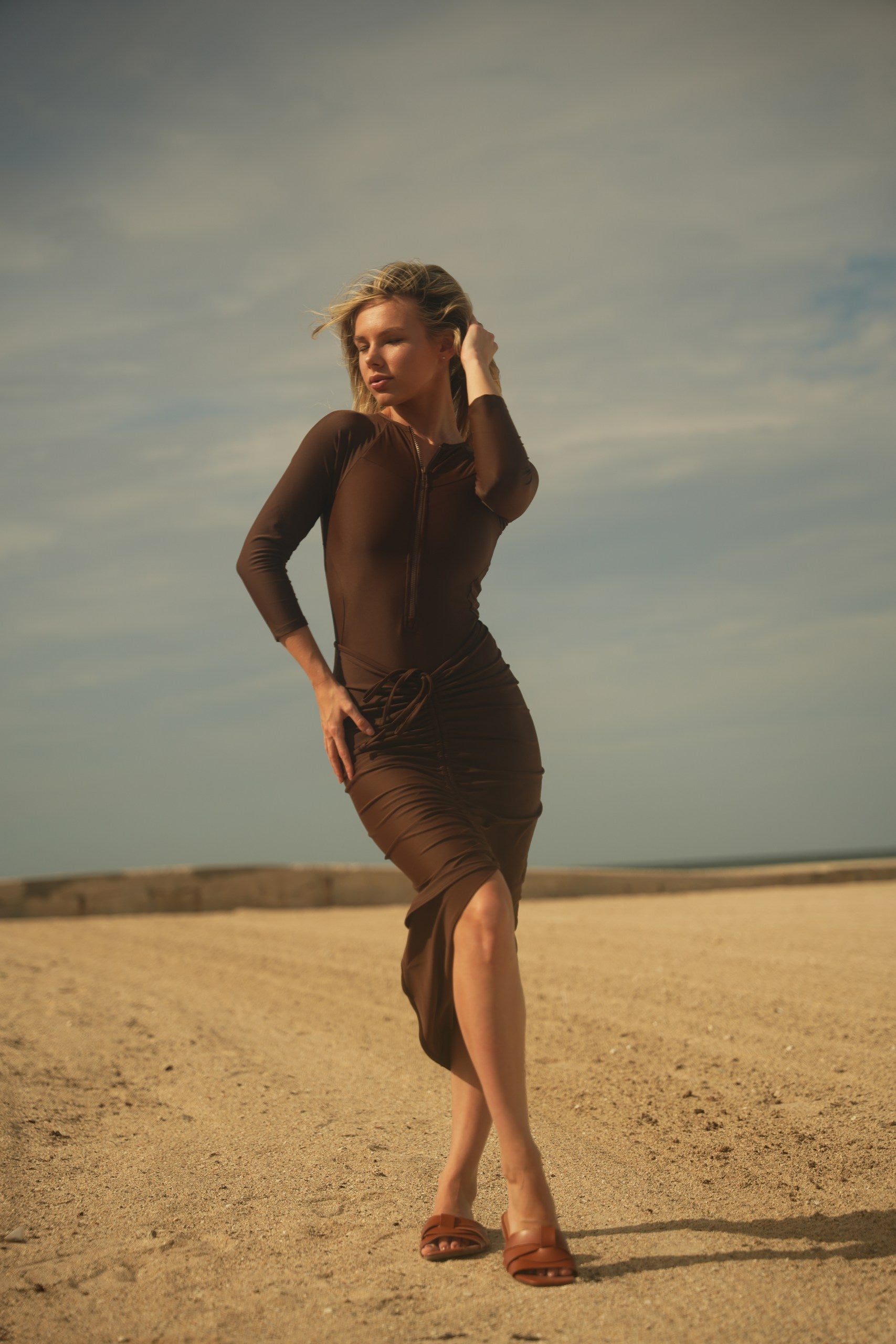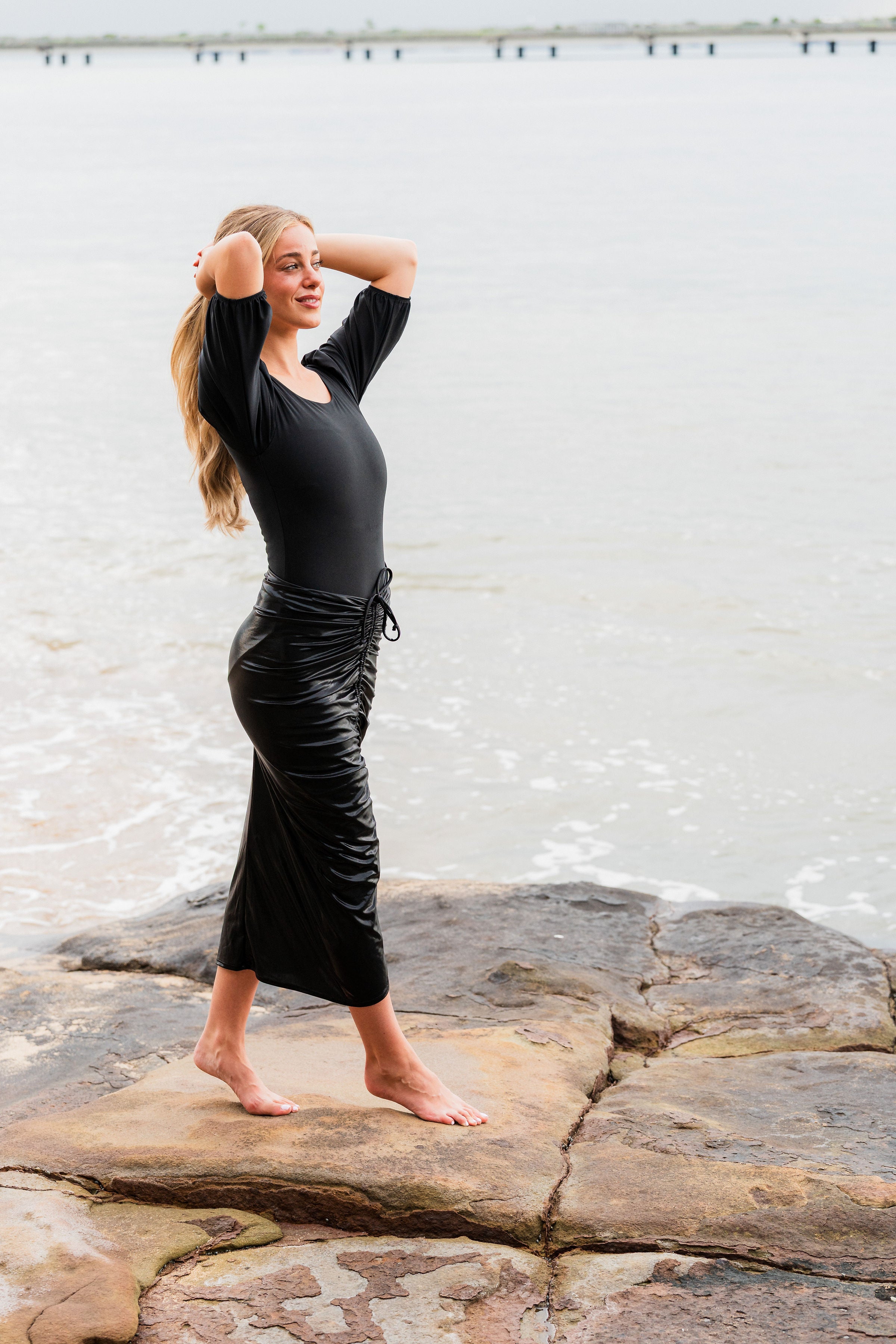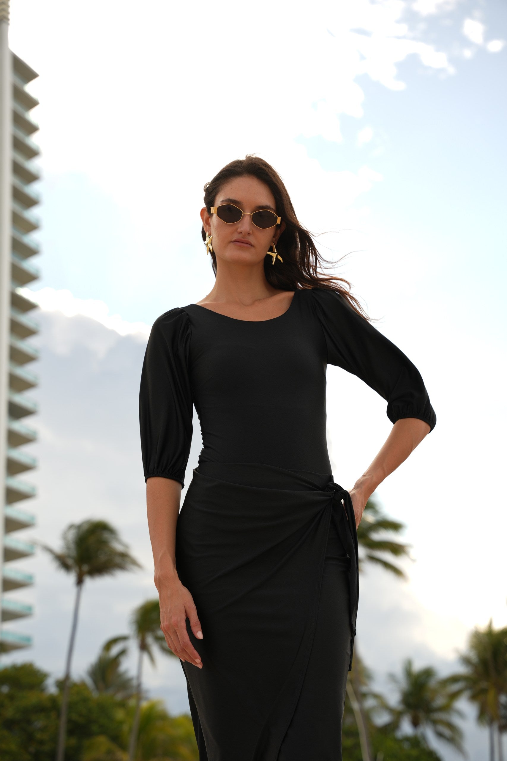 Not your average swim skirt. Mahlia is made to move with you—from the beach to wherever you’re headed next. It’s got an adjustable ruched drawstring you can wear down the center or off to the side, depending on your mood.